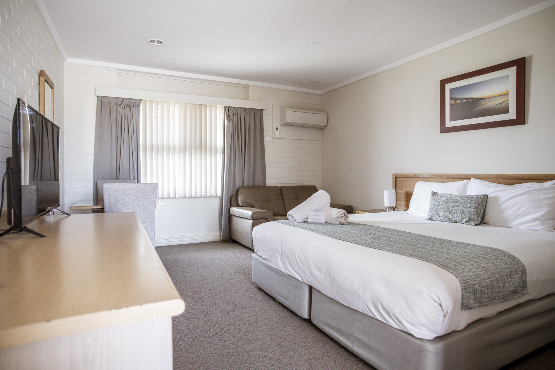 The Executive King Rooms feature a king sized bed, and offer the luxury of a large flat screen television offering the latest technology, FREE Foxtel, including sport and movie channels. Wi-Fi is free of charge. These comfortable rooms also come with complimentary tea and coffee making facilities, hairdryer, iron and ironing board, mini bar, fridge and bathroom amenities.