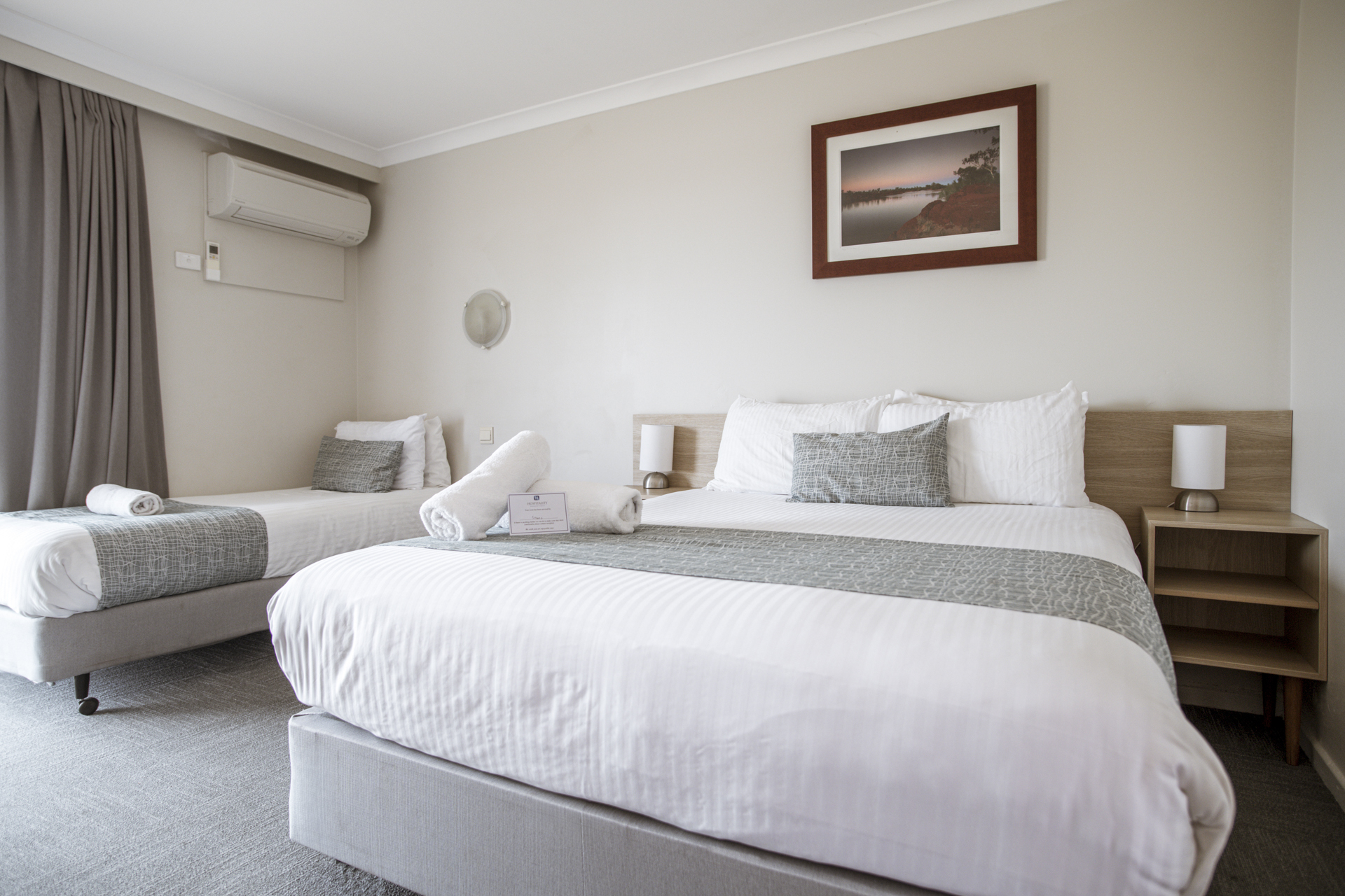 Stay in affordable comfort in the Queen Motel room. The comfortable, spacious and air-conditioned motel rooms offer business and leisure guests a queen sized bed, table and chairs, FREE Foxtel, including sports and movie channels, FREE Wi-Fi, tea and coffee making facilities, mini bar and fridge, a hairdryer, iron and ironing board. All rooms are serviced daily and room service is available.